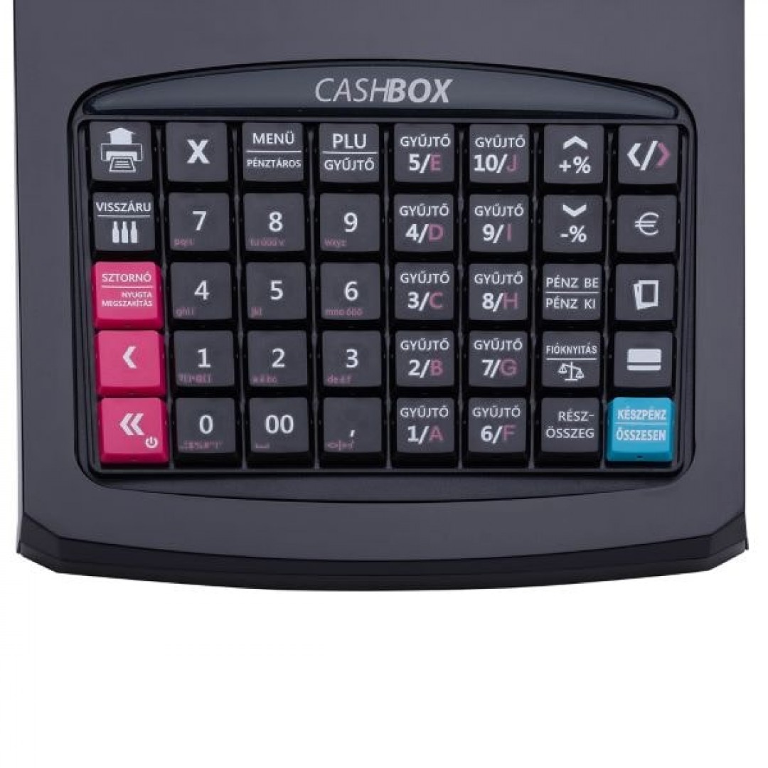Billentyűzet | A 40 darab strapabíró műanyag gomb elhelyezése ergonomómiailag átgondolt, ezáltal segítik a produktivitást. Az egyszerű piktogrammok gyorsabban felismerhetők a kiírt szövegnél. A különböző funkció csoportok színek szerint különválnak tovább segítve az eladót. Elsődleges funkciók fehér, míg a másodlagos funkciók narancsárga színüek. |